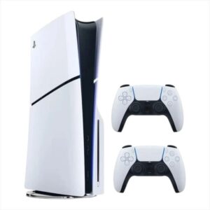 PlayStation 5 Slim Console bundle includes two DualSense wireless controllers for immersive gaming with stunning graphics and lightning-fast load times.in Gaming